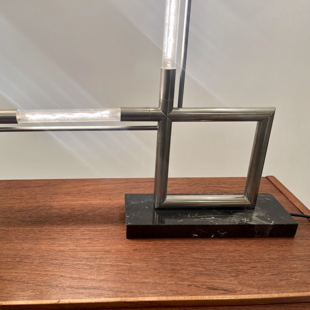 Lampe moderniste Quadro de Jacques Adnet, intemporelle et épurée.